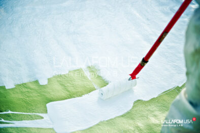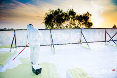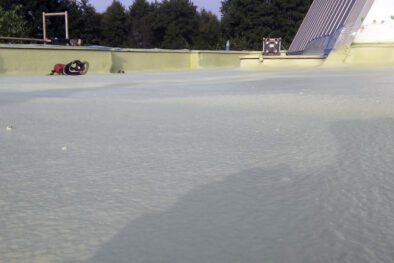 Na większości dachów płaskich lub o lekkim nachyleniu, występują często obszary wody stojącej. Porównując powłoki akryliczne do SealCote 1000 ogromną różnicę stanowi fakt iż silikonowy system dachowy nie ulega procesowi emulgacji (rozkładowi w emulsję) w kontakcie ze stojącą wodą. Adhezja do podłoża dachu pozostaje nienaruszona a biały lub szary silikon staje się odblaskową powłoką anty UV – kluczowe w dniach nadmiernego nasłonecznienia.